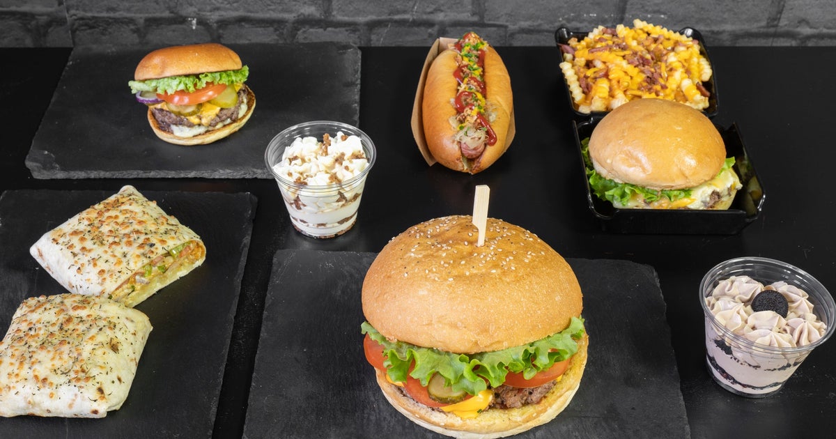 1 Chicken Classic + 1 Greedy Burger + 1 Smash Burger + 1 Cheese +1 Classic dog + 1 New Dog + Frites + Bouteille.